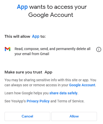 Google may cause your authorization token to expire. The length of time depends on your Google account type and terms, so you may be forced to refresh this from time to time. Total Access Emailer verifies your Google Gmail settings are valid before launching an email blast and while it's sending emails.