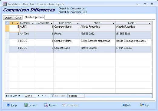 For additional information on comparing data and the many options Total Access Detective offers, visit Compare Records (data) Between Microsoft Access Tables and Queries