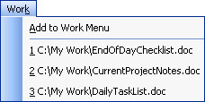 Adding documents to the menu is easy—just open the document and select Work, Add to Work Menu. Removing documents, however, is a little trickier.